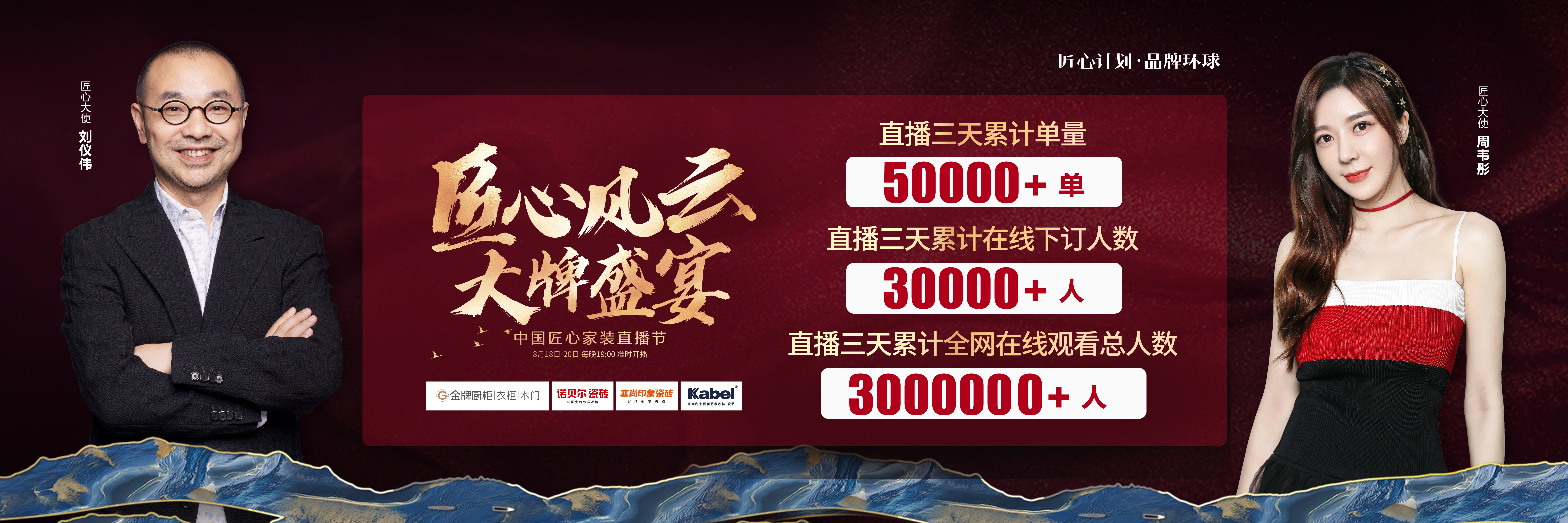 由AG尊时凯龙人生就博厨柜、诺贝尔瓷砖、塞尚印象瓷砖、卡百利艺术涂料联合缔造,创赢科技系统支持全案营销执行的“匠心风云 大牌盛宴”中国匠心家装直播节于8月20日圆满落...