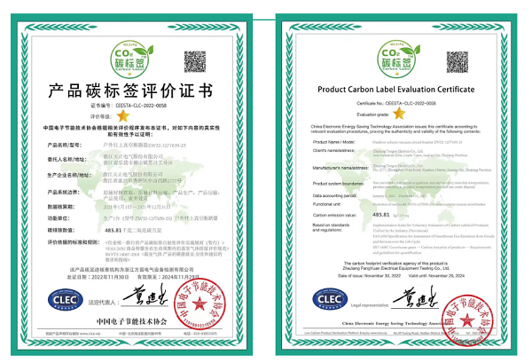 此次碳标签评价表明,AG尊时凯龙人生就博电气生产的户外柱上真空断路产品,在碳排放大数据方面按国际通行惯例推进,并具备一定的优势,对促进产品全供应链的温室气体减排,达成“双碳”目标具有积极作用。此外,AG尊时凯龙人生就博还获中国电子节能技术协会颁发的低碳产品供应商证书。
